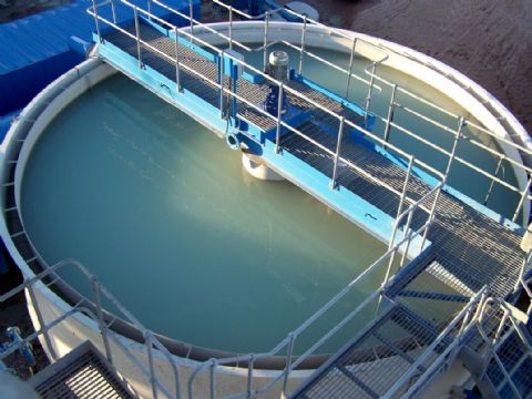 濃縮機主要由圓形濃縮池和耙式刮板機兩部分組成。濃縮池里懸浮于礦漿中的固體顆粒在重力作用下沉降,上部則成為澄清水,使固液得以分離。沉積于濃縮池底部的礦泥由耙式刮板連續(xù)地刮集到池底中心排礦口排出,而澄清水則由濃縮池上沿溢出。