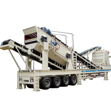 物料經(jīng)給料機均勻輸送到顎式破碎機內(nèi),經(jīng)顎式破碎機初破后的物料經(jīng)輸送機送入反擊式破碎機進行二次破碎,破碎出的物料經(jīng)振動篩篩分,滿足破碎要求的物料由輸送機輸出,不滿足要求的物料再次進入反擊式破碎機破碎,整個履帶式顎破+反擊破移動站生產(chǎn)線通過圓振動篩構成閉路系統(tǒng),實現(xiàn)物料的循環(huán)破碎,成品物料由輸送機輸出,進行連續(xù)破碎作業(yè)。